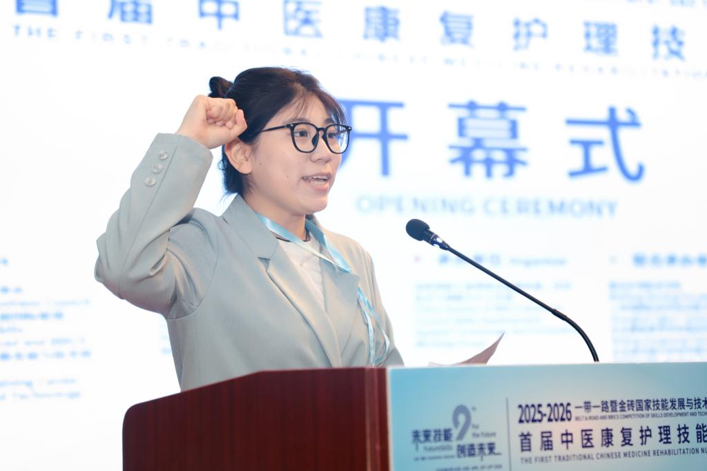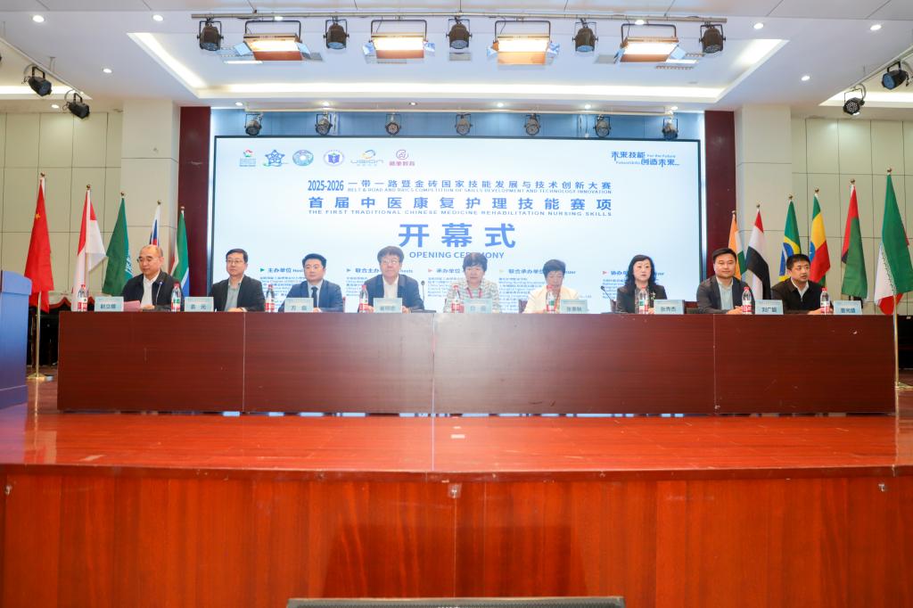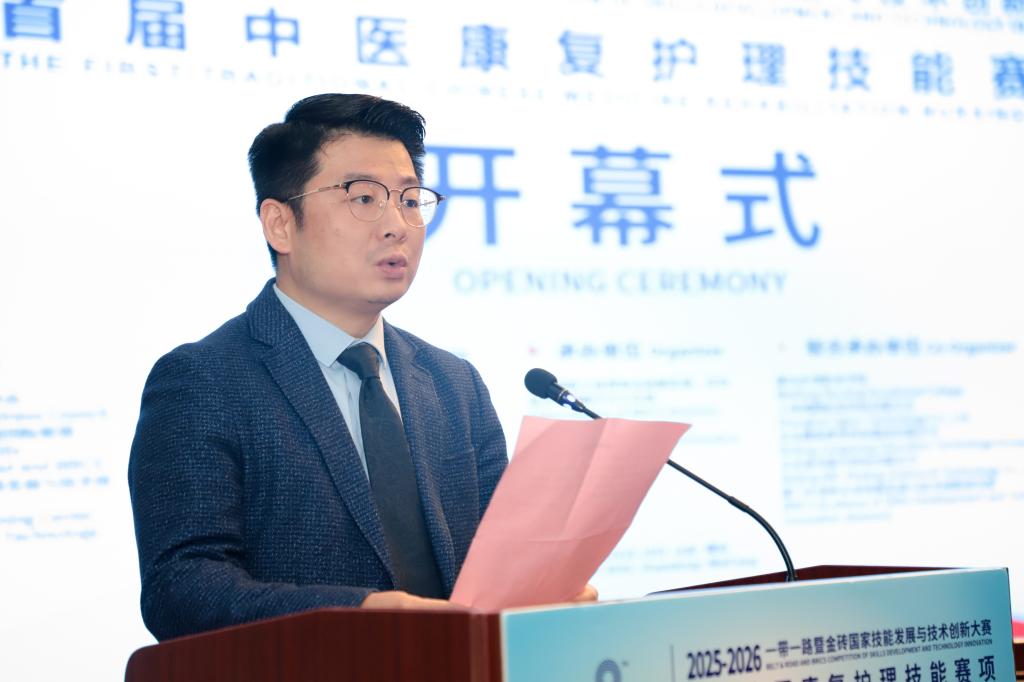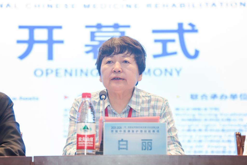 白丽在致辞中表示,本次大赛是金砖国家技能合作与教育交流的重要平台,赛事紧扣“未来技能 创造未来”发展愿景,聚焦中医康复护理核心领域,搭建了国际化、专业化竞技舞台,对推动中医康复护理标准化、规范化、国际化发展具有深远意义。